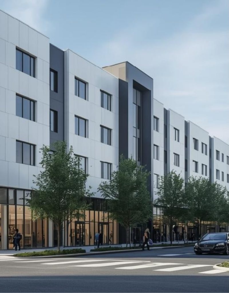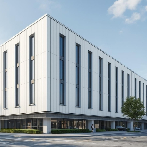 Realizujemy zaawansowane systemy fasadowe dla biurowców, centrów handlowych, szpitali itp. Łączymy rygorystyczne normy bezpieczeństwa z nowoczesnym designem, wykorzystując trwałe płyty HPL oraz beton architektoniczny GRC.
